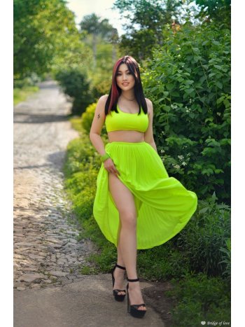 I like strong men, strong not only physically. I want my man to have inner strength, willpower, fortitude, to be confident in himself. In my opinion, these qualities are the most important. If a person is strong in spirit and confident in himself, he will always treat other people with respect and understanding and of course his beloved woman. I would like to see just such a man next to me, melt in his arms and dissolve in his gaze. I want to give him my passion that lives inside me. Would you like to try and find out where it will lead?